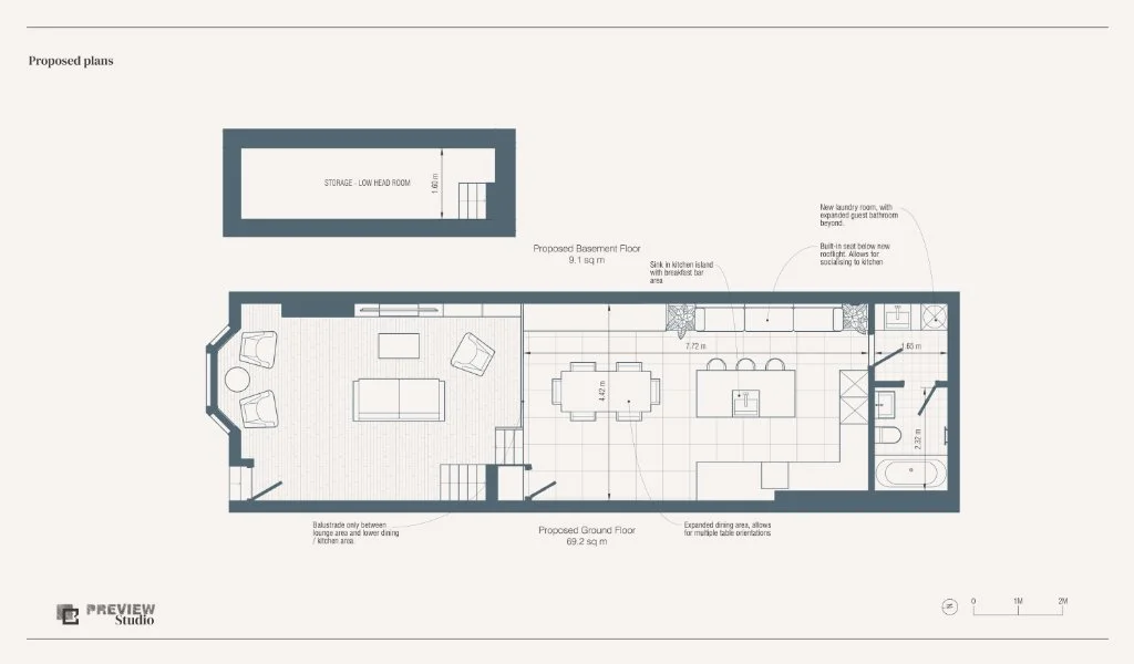 Image: A plan drawing for a house renovation by Preview Studio. This one comes from our Vauxhall House project.