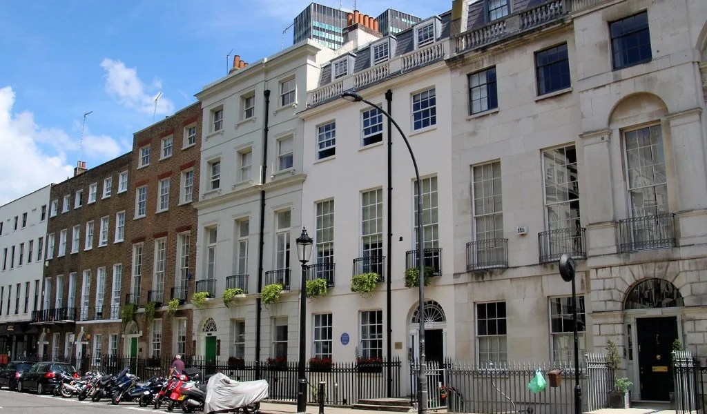 Image: Grade II* Listed Georgian houses on Fitzroy Square in London. See the list entry on the Historic England website.